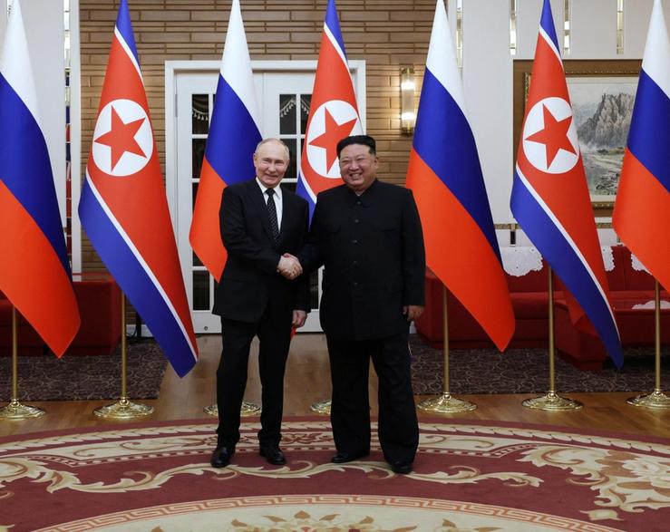 Vladimir Putin and North Korean leader Kim Jong Un signed a defense pact on Wednesday as the Russian president received a lavish welcome in Pyongyang, his first visit to North Korea in 24 years.