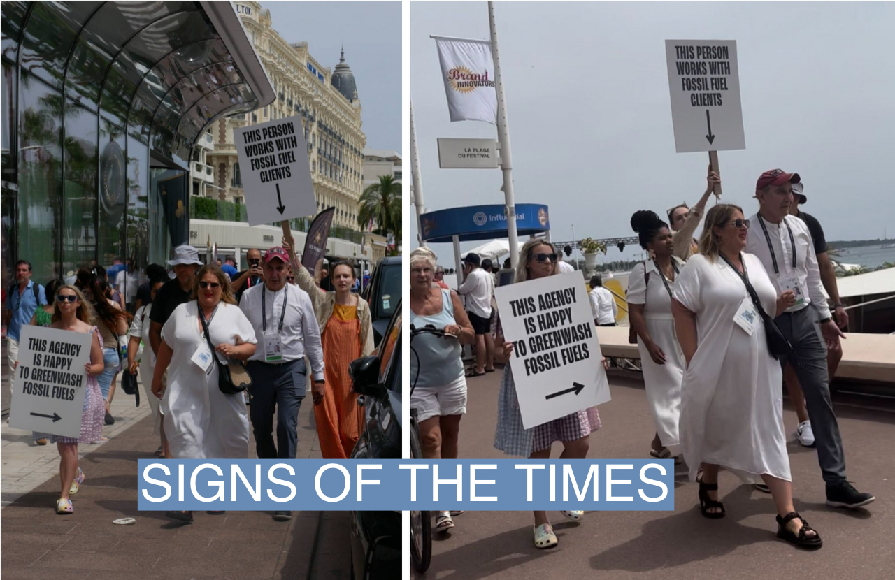 Clean Creatives did deploy some aggressive tactics, strolling along the Croisette on Wednesday behind Edelman CEO Richard Edelman with a placard reading: “This person works with fossil fuel clients.”