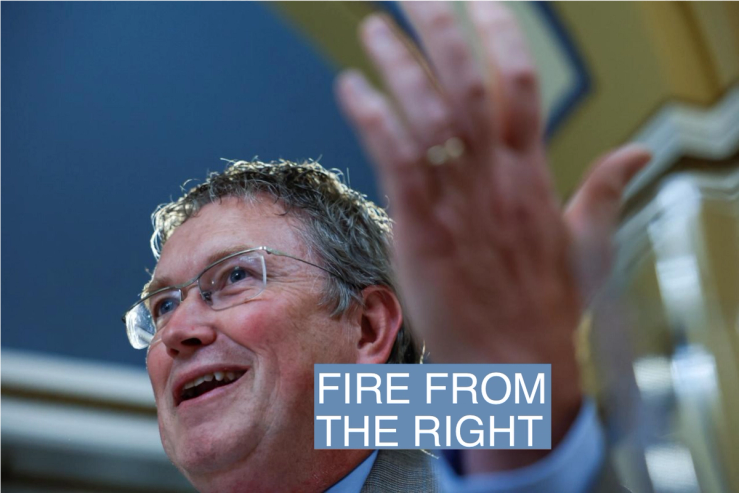 Chief among Massie’s Republican critics these days is Russell Vought, the former Office of Management and Budget director under Trump who has become an influential economic advisor to hardline conservatives. (He even enjoyed automatic approval for meetings with Massie himself).
