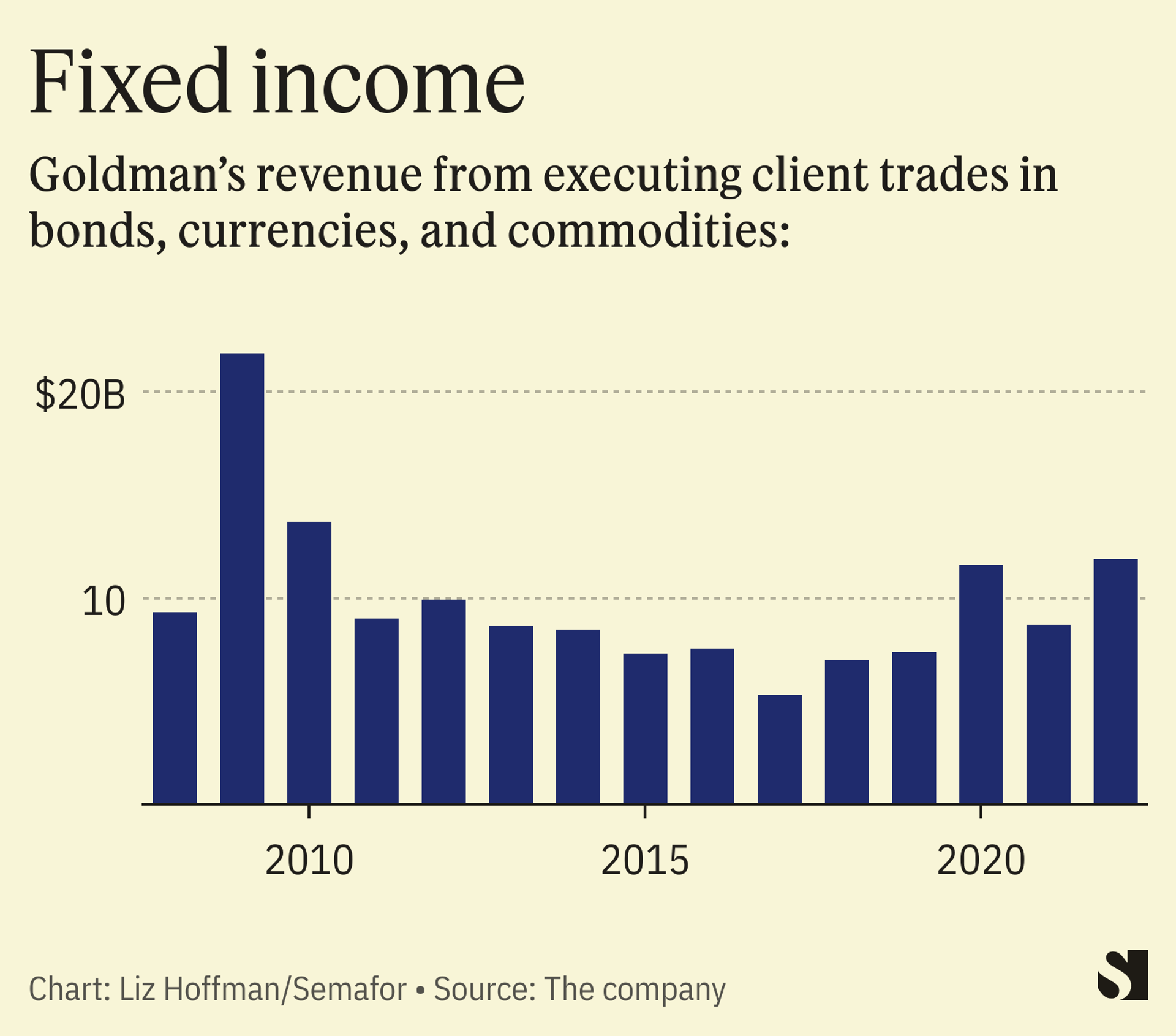 Goldman is retreating to its Wall Street roots like trading, an area where Montag has experience that neither Solomon nor Waldron do. Bond trading was once Goldman’s profit engine but floundered in the 2010s and is now improving. Goldman’s secret sauce was always its risk management, and Montag adds heft there.