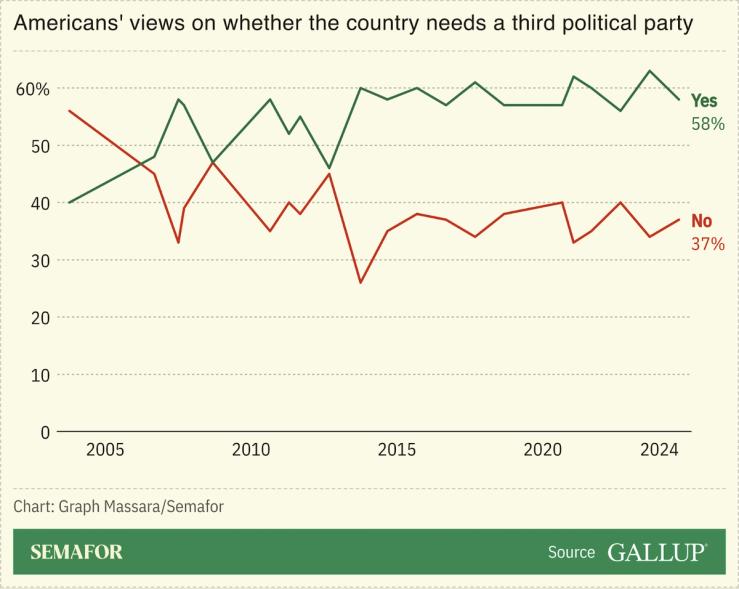 Most Americans believe the country needs a third major party, but Musk “has yet to outline a concrete plan forward,” and would have to navigate complex election laws and ballot access regulations, Politico wrote.