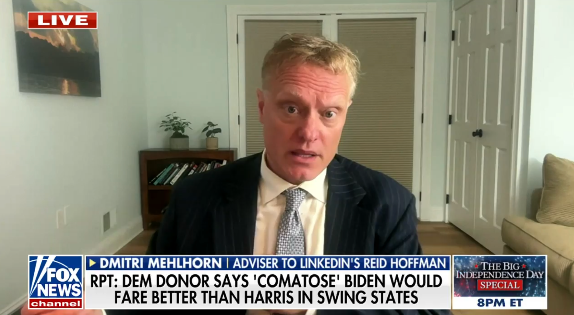 - Mehlhorn last made news when he said on the private conference call that a “dead” or “comatose” Joe Biden would have a better chance of defeating Donald Trump than Kamala Harris.