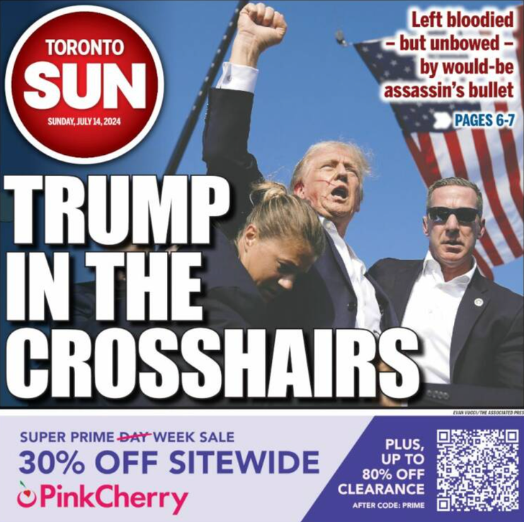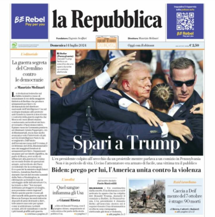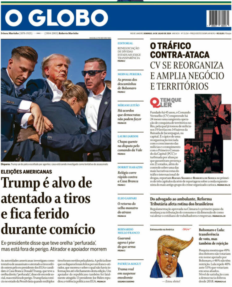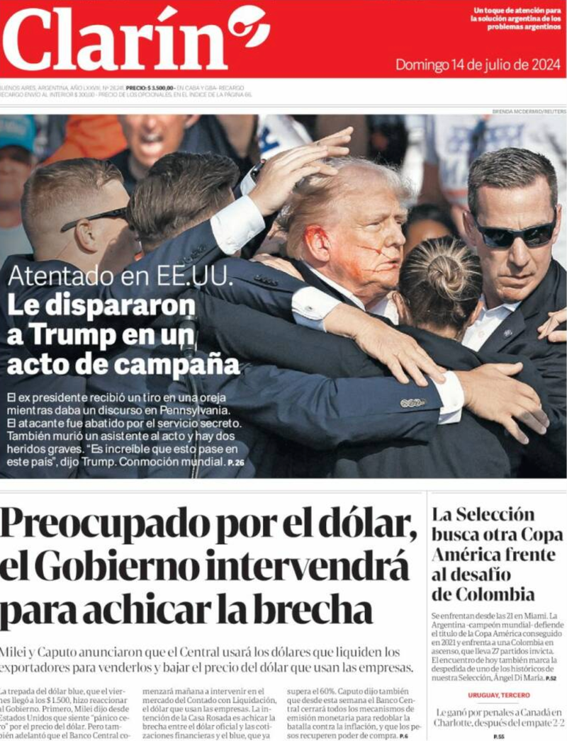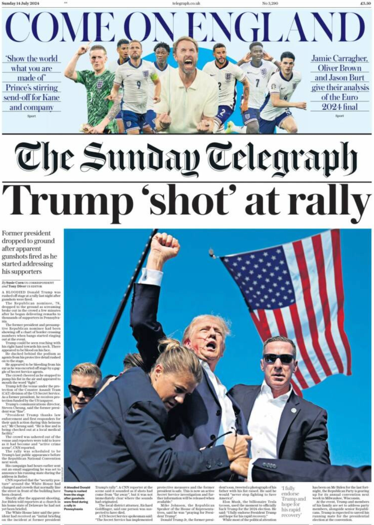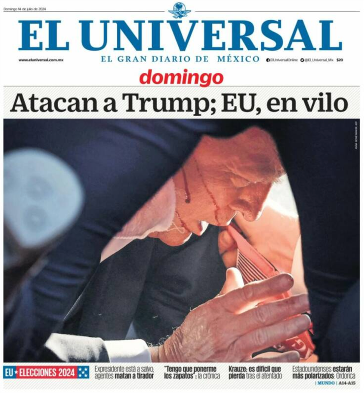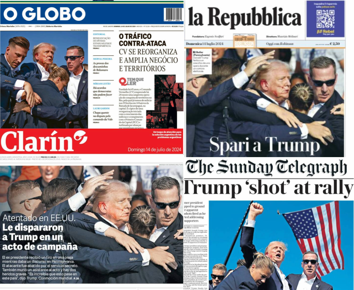 Several photos of Trump, many showing him raising a fist as blood streams from his ear, quickly made front pages across the world while many global leaders condemned the attack.