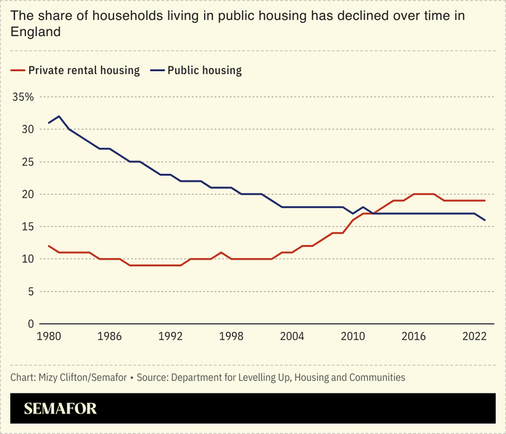 If the government is serious about getting young people onto the property ladder, it should focus on building truly affordable social housing rather than private homes, UK newspaper the i’s housing correspondent argued. That might require ending the Margaret Thatcher-era Right to Buy program, a step Labour has so far rejected, but as one senior party official described, the policy functions like “trying to run a bath with the plug out” because sold-off stock is rarely replenished, The Big Issue noted. But Britain’s “obsession” with home ownership as a status symbol and means of wealth generation may also be part of the problem, ITV News’ Robert Peston said on The Rest is Money podcast.