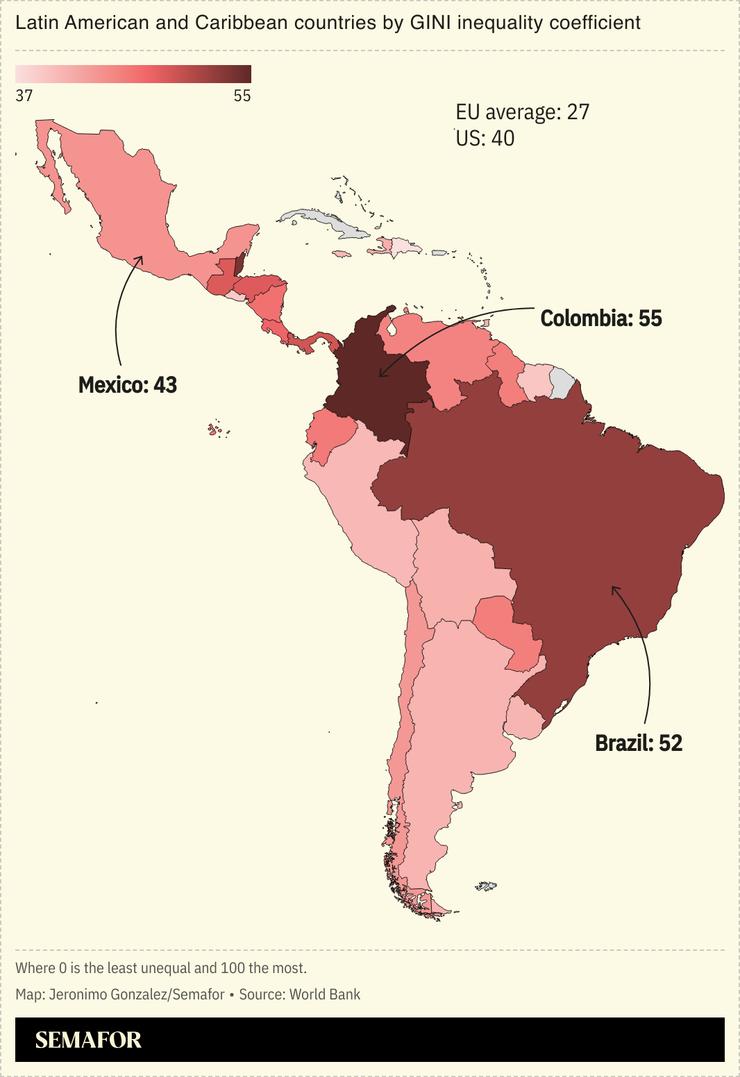 Because of inequality, Latin America has experienced devastating effects of climate change despite its rich biodiversity and lower fossil fuel emissions, El País reported. But the region also has one of the world’s cleanest electricity sectors and houses vast reserves of minerals like lithium, which are critical to the green transition. Promoting investments in the green economy could help tackle inequality in the region, a 2023 report from the Organisation for Economic Cooperation and Development argued: Jobs requiring employees with specialized skills will grow, reducing widespread informal labor that still makes up almost half of the workforce in Latin America.