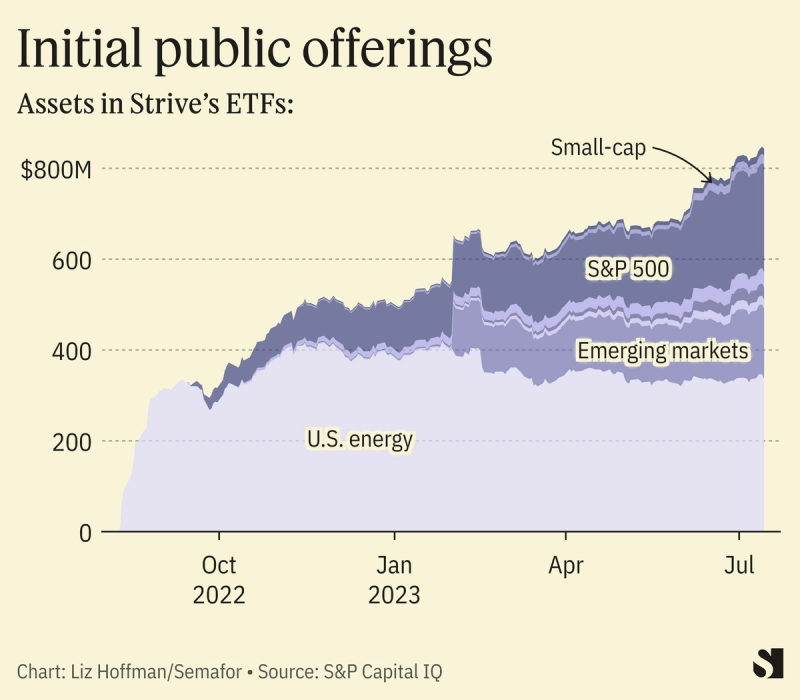 Strive runs eight exchange-traded funds, none of which would be out of place in a typical investment portfolio. Recent launches include a small-cap stock fund and a growth fund heavy on big tech names.