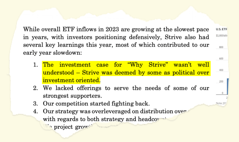 Strive Asset Management is seen “as political over investment oriented,” turning off some investors and limiting its opportunities to grow, according to the letter, viewed by Semafor.