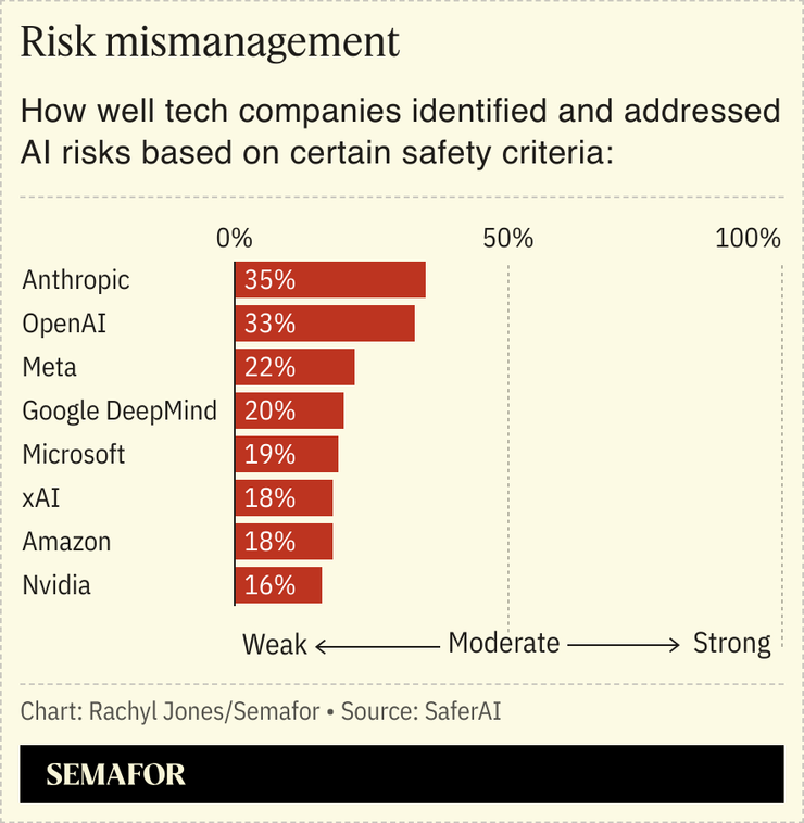 “Initially, [the companies] weren’t even writing down their plans,” SaferAI CEO Siméon Campos told Semafor. “It was a big step for many of these companies to write their plans, but many are still far from what experts consider to be adequate.”