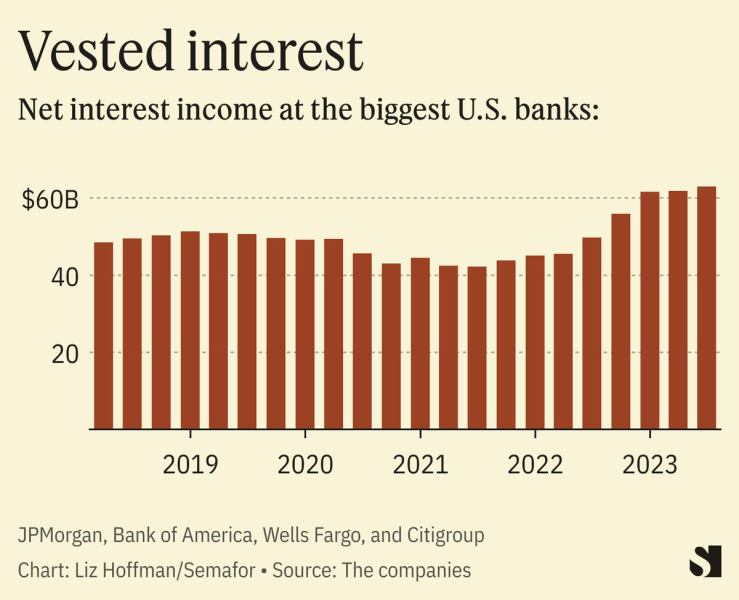 Bucking concerns that higher rates would hurt rather than help, interest on loans more than offset what banks had to cough up to keep depositors from fleeing for better rates elsewhere, mostly in money-market funds that better track what money really costs these days.