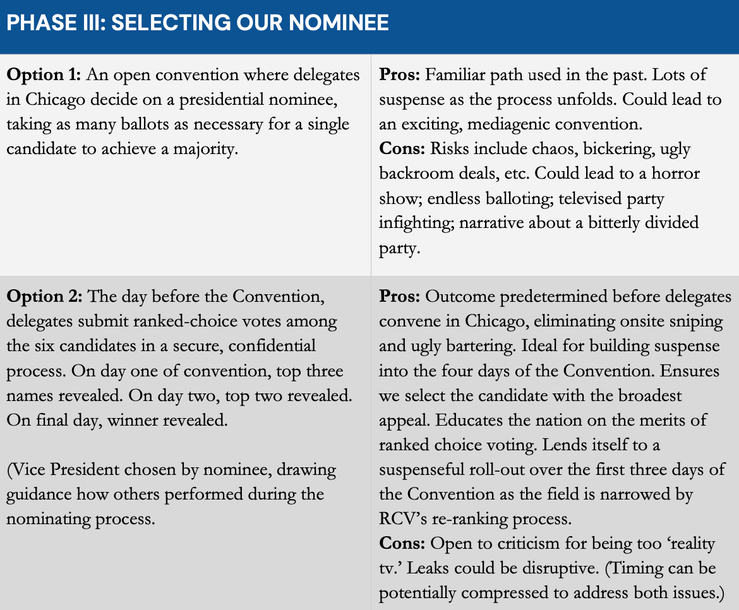 All that would be left is for convention delegates to choose — either through a traditional series of votes, or through a ranked-choice process.