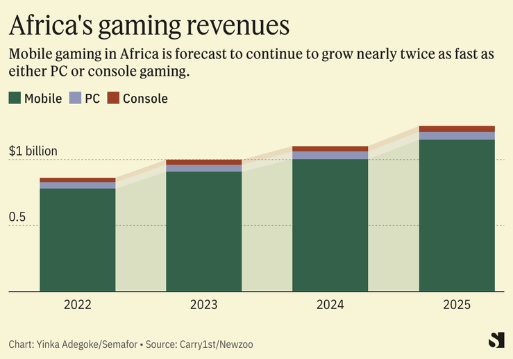A new report estimates that gaming revenue in Africa grew by 8.7% last year and is set to grow by 16% this year — and will break the $1 billion revenue mark in 2024. The report by games market data provider Newzoo and Cape Town-based Carry1st, a games publisher, says the growth is driven by mobile gaming which dominates on the continent growing faster than gaming revenue on personal computers or consoles such as Playstations and the Xbox.