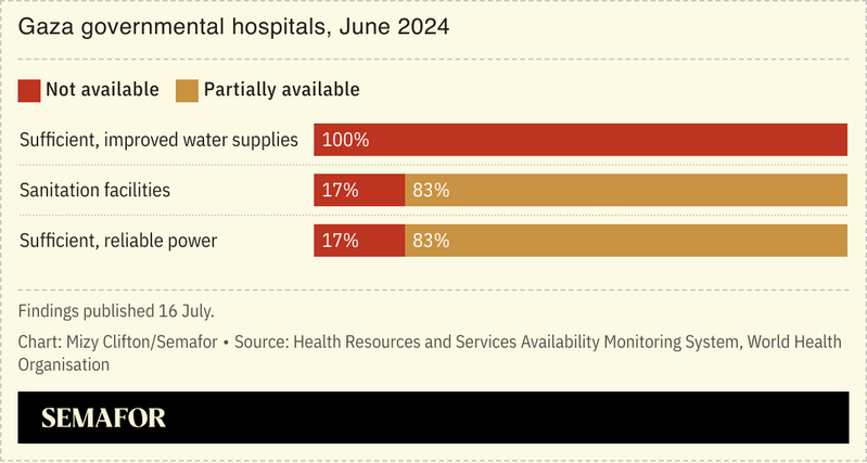 Gaza is already grappling with a public health emergency: More than 100,000 people have contracted acute jaundice syndrome, or suspected hepatitis A, and there are nearly a million cases of acute respiratory infections, The New York Times reported. The enclave’s health care system was “reasonably well functional” before the war, a WHO representative said, but fewer than half of its facilities now remain operational, and more than 500 medical personnel had been killed as of late June, according to the UN Human Rights Office. Israeli attacks on hospitals and other medical facilities “should be investigated as war crimes,” Human Rights Watch argued in November.