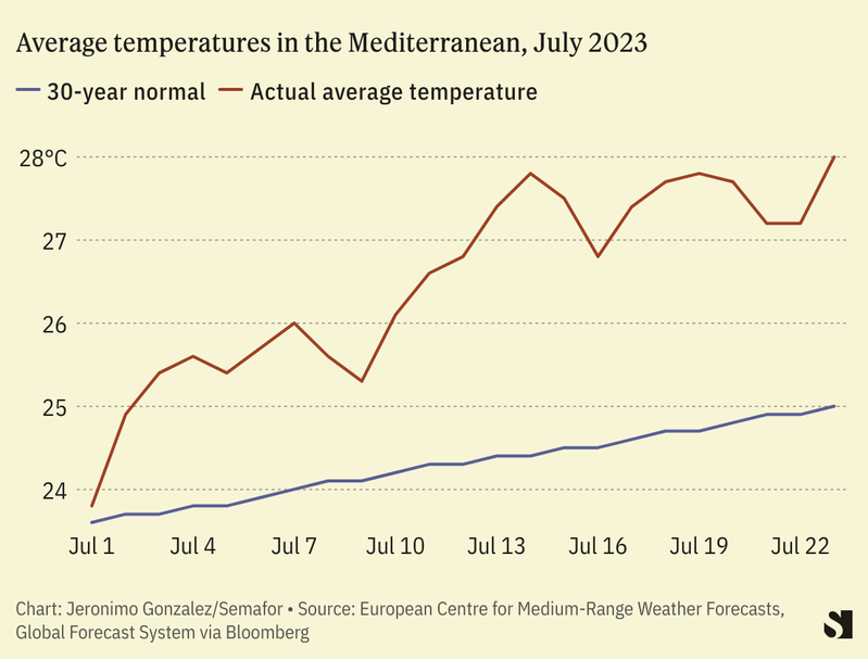 - The heatwaves have left hundreds of thousands across Sicily without power or running water. A mayor in the region said his city had been “brought to its knees” by temperatures approaching 50 degrees Celsius, more than 120 degrees Fahrenheit, which had melted underground cables. High temperatures across Europe and North Africa have affected utilities, airports, and public transport. As heat waves increase in intensity and duration, repair bills could become expensive. “Most of our existing infrastructure was designed based on temperature averages 60 to 80 years ago,” an expert in engineering and critical infrastructure told The Wall Street Journal, “but these aren’t the conditions we are facing today.”