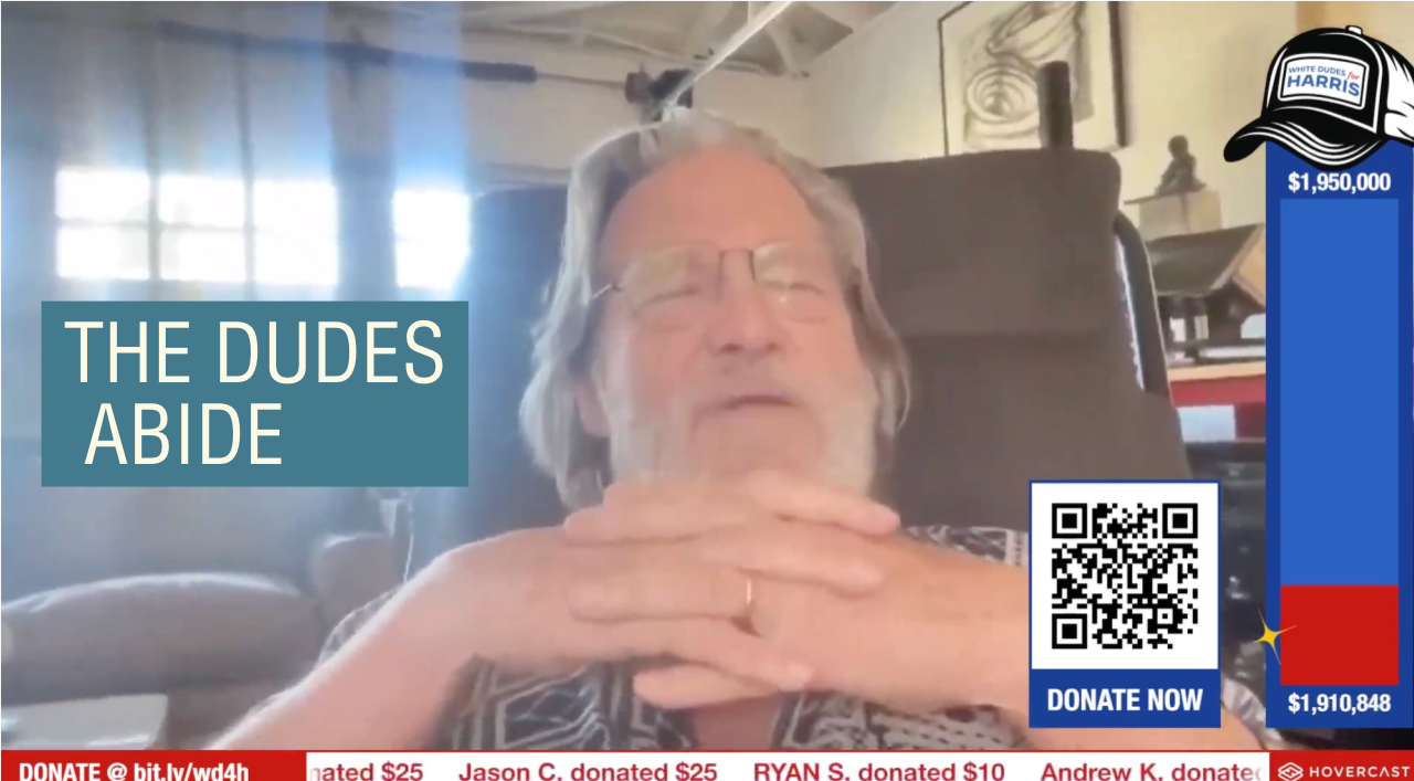 “I’m white, I’m a dude, and I’m for Harris,” Jeff Bridges, one of the world’s most famous dudes, said during the program. “A woman president, man, how exciting,” he added.