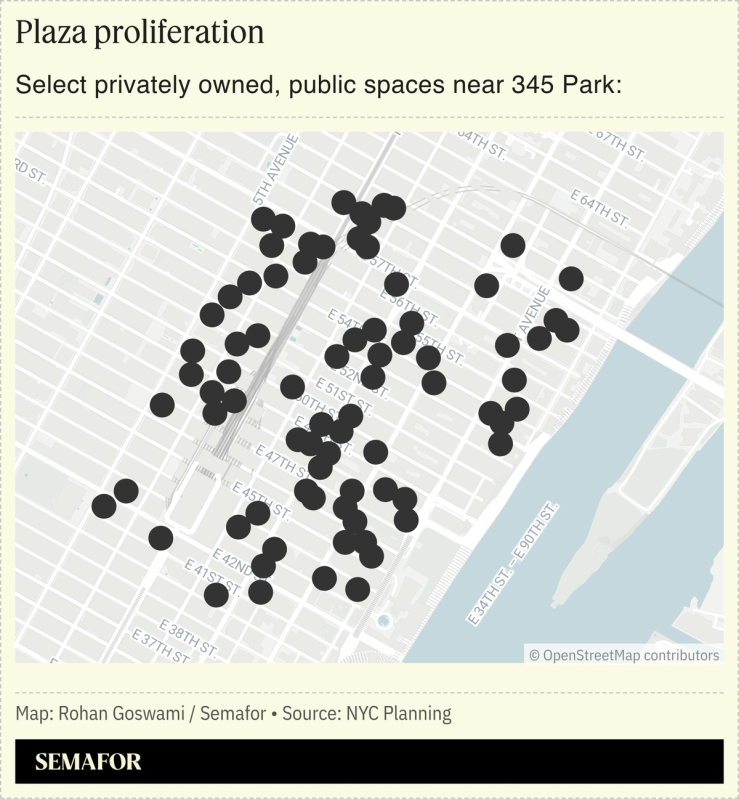 Buckner now questions whether that will be enough. Bag checks, metal detectors, dozens of security agents in the lobby — visible signs of increased security — are some of the things buildings will have to deploy in the wake of an incident like this week’s, Buckner said. But just as important will be the behind-the-scenes improvements, especially in buildings like 345 Park, which has a large space that’s open to the public. (New York zoning rules encourage these “privately owned public spaces” like plazas, lobbies, and seating areas.)