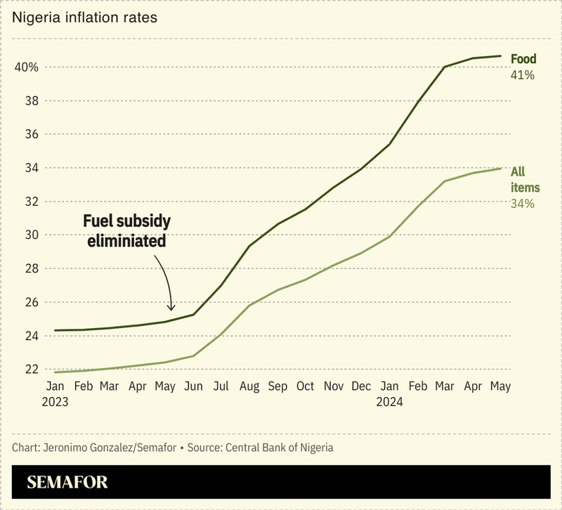 The protests in Nigeria are shaping up to be like the violent protests that recently gripped Kenya. They are part of a larger wave of youth-driven mobilization across Africa, fueled by growing anti-government sentiments and the use of social media as an organizing tool. It could serve as “a wake up call” to African governments, a Nairobi-based researcher told Semafor. “Governments need to move with speed and address the grievances of the people” if they want to avoid further uprisings.
