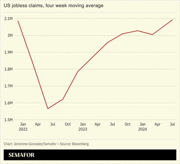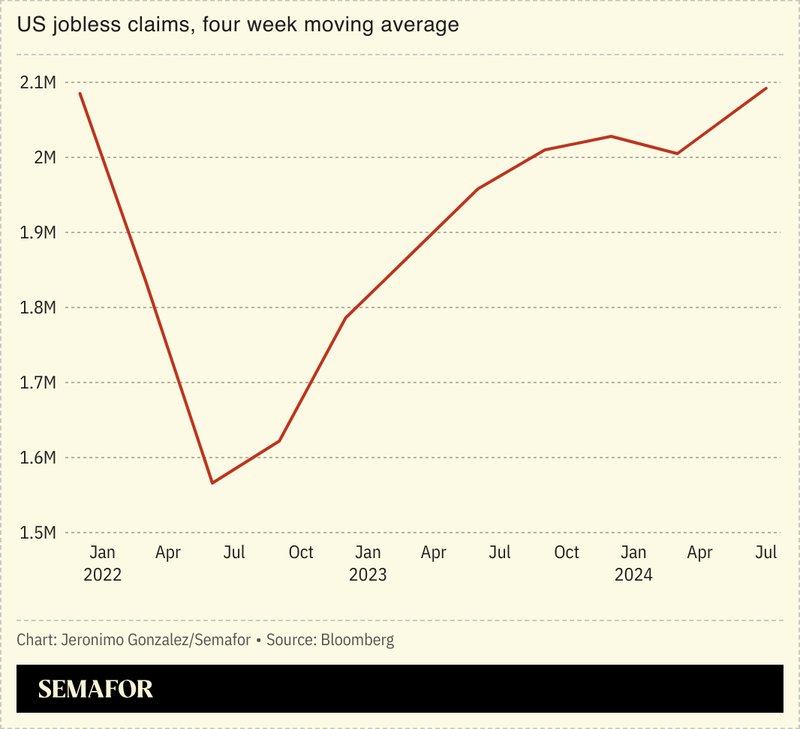 Bad economic news was compounded by fears over the tech sector, as investors questioned whether a frenzy around artificial intelligence that has driven stock markets to record highs will translate into meaningful profits. The tech-dominated Nasdaq index dropped by 2.3% Thursday. Two tech giants reported disappointing results after markets closed, adding to the malaise: Intel, which announced it would lay off 15,000 employees after failing to capitalize on the AI boom, and Amazon, whose CEO Andy Jassy warned profit would have to take a backseat to investments in in artificial intelligence, Bloomberg analysts said. European tech stocks also reached their lowest point in six months Friday.