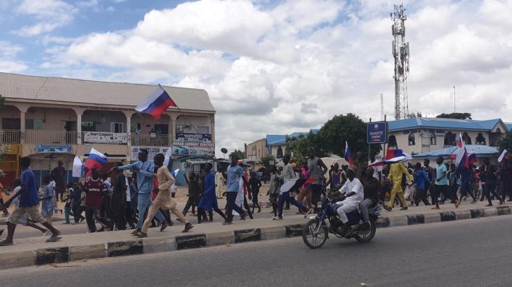 The nationwide protests to decry the rising cost of living and “bad governance” started on Aug.1 and spread across the commercial capital Lagos and several northern cities last week. But security forces have had a delayed response to the unusual but increasing presence of pro-Russia support at some of the protests in northern states including Borno, Kaduna, Kano and Katsina. This week the police said they had arrested some tailors responsible for making Russian flags. The Nigeria Police Force and the defense chief both said the use of foreign flags during protests and openly calling for a military takeover of the government is a capital offense under Nigerian law.
