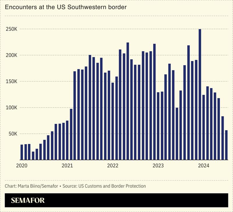 It’s unlikely that crossings will remain low for much longer, The Wall Street Journal wrote. Biden’s executive order has deterred people for now, but it is facing significant legal challenges, and some experts think it’ll be doomed, in the same way a 2018 Trump bill that tried to ban certain migrants was deemed unconstitutional. Meanwhile, Mexico’s system of redistributing migrants within its interior is essentially “putting a cap” on migration without addressing its root causes, which are getting worse, an expert told the BBC. Migration out of Venezuela is largely expected to increase following its contested election, and will likely become a huge challenge for the US in the coming months, the Journal noted.