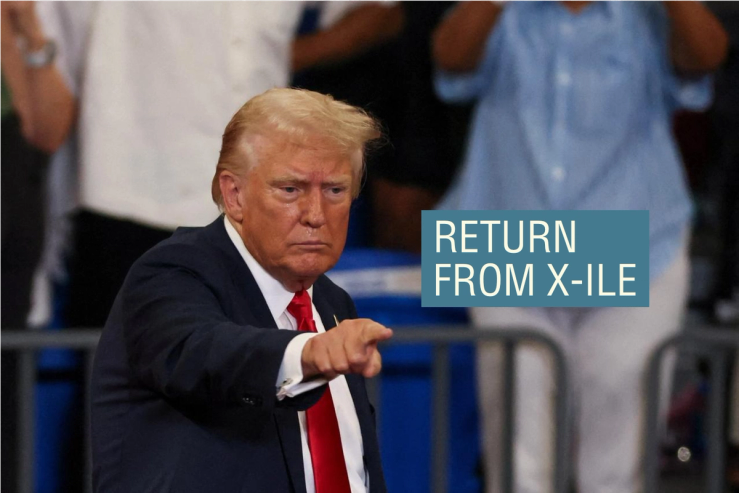 Donald Trump returned to X on Monday in dramatic fashion, posting a series of campaign videos leading up to his interview with Elon Musk, the owner of the social media app.