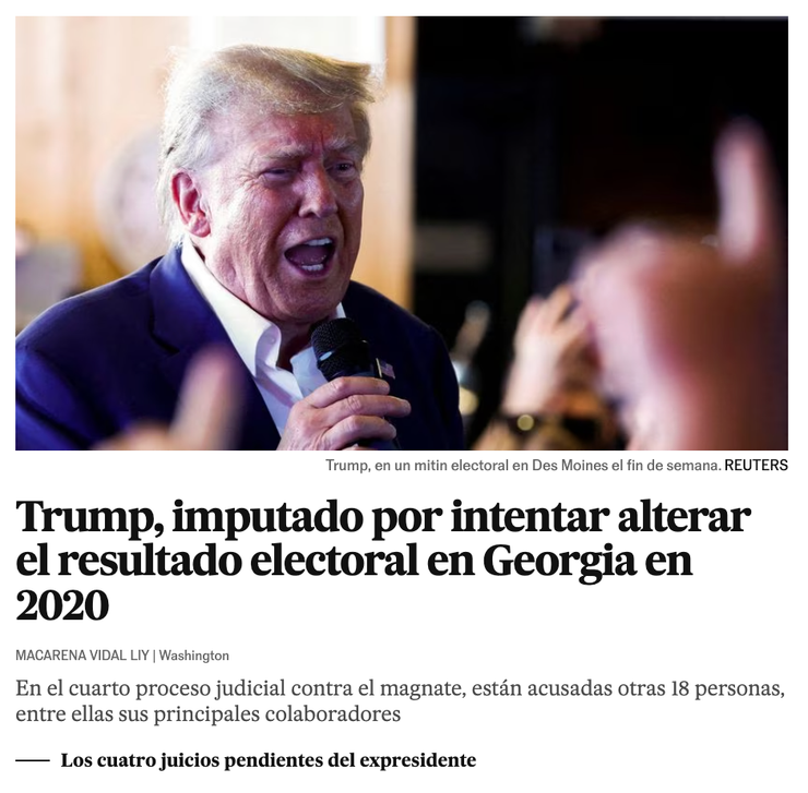Trump accused of trying to alter the electoral result in Georgia in 2020 — El Pais