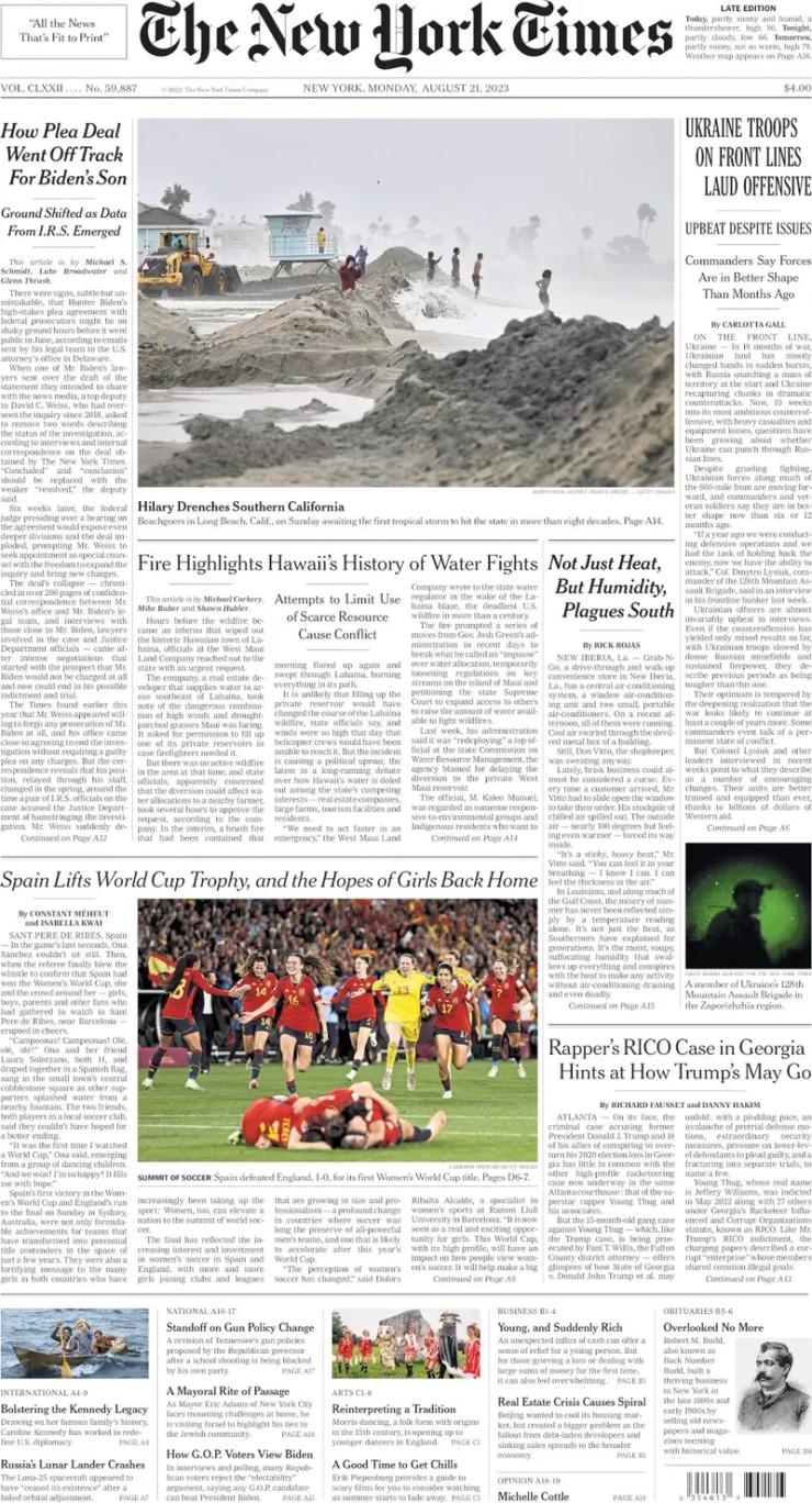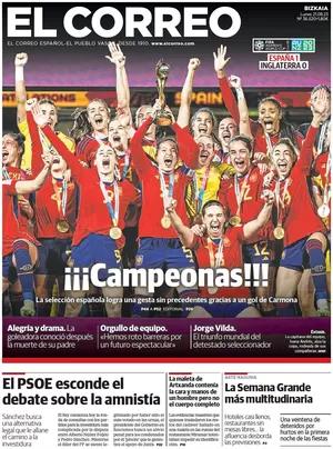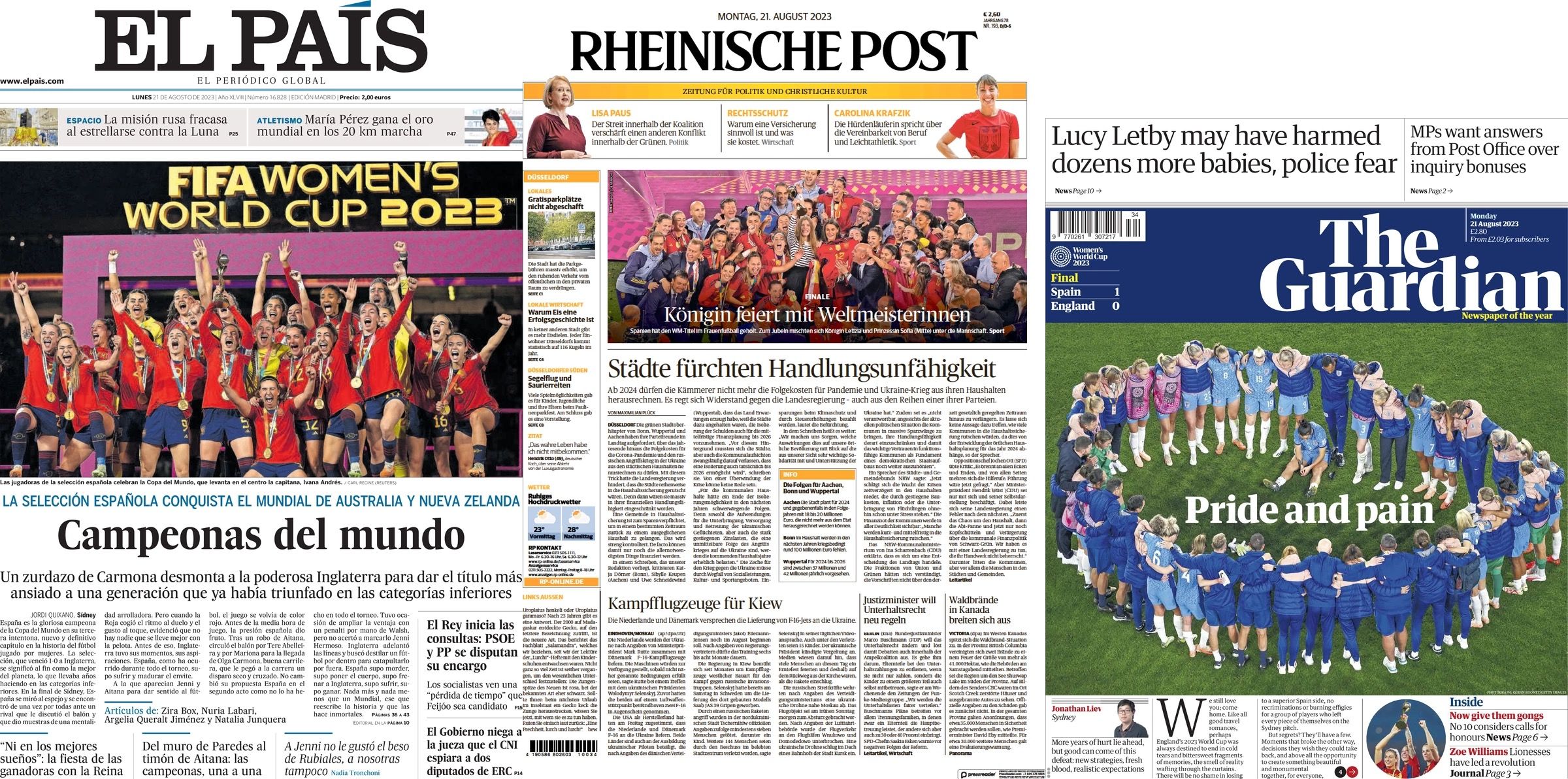 Spain took home the FIFA Women’s World Cup Sunday, ousting England 1-0 in a nail-biting final. Almost two million people attended the tournament — 600,000 more than a previous record. We look at the front pages celebrating Spain’s first-ever women’s cup win.