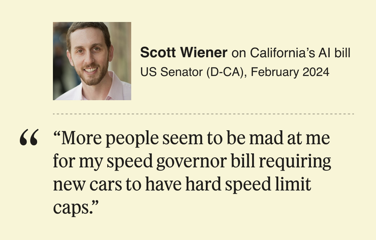 When I spoke with Sen. Scott Wiener, he seemed to think his AI bill was going to sail by without opposition. It turned out the opposite was true. I hope Wiener will talk about what he learned from the process in a future interview.