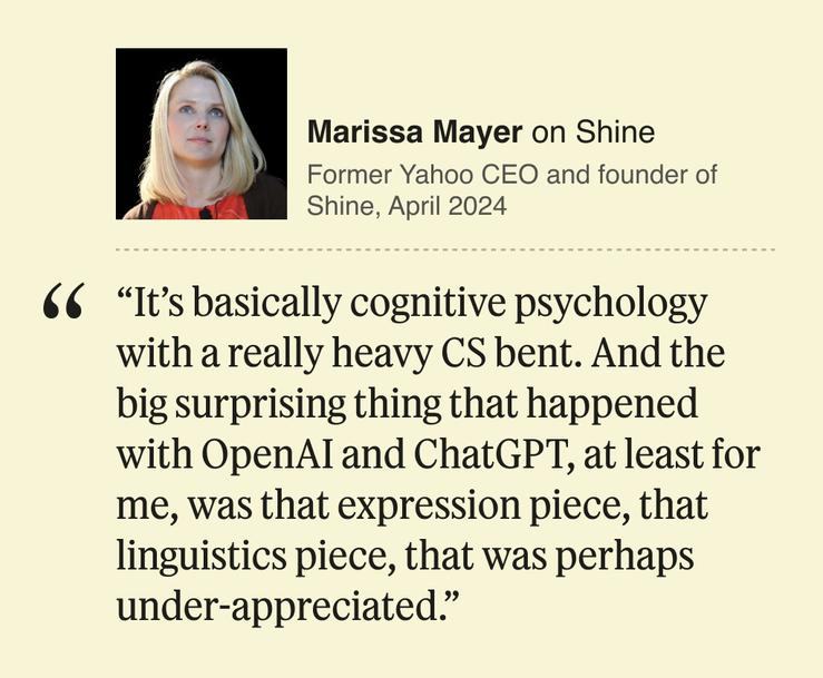 I chatted with Marissa Mayer while she was promoting her new photo sharing app, Shine, but my favorite part of the interview was when she geeked out about symbolic systems (her major at Stanford) and her view of current AI technology.