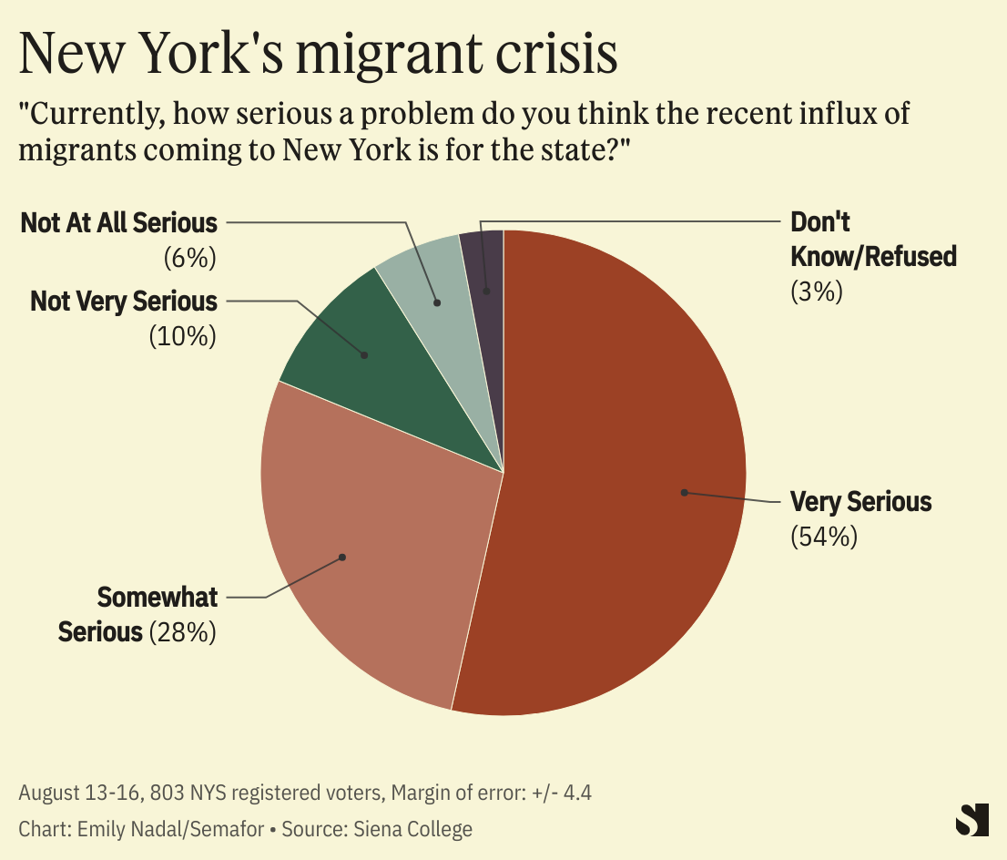 It’s a tough message from a city and state defined by immigration: The New York pollster Siena found that 82% of the state’s registered voters consider the recent wave of migrants to the state a serious problem, and that 58% say New Yorkers have “have already done enough.”