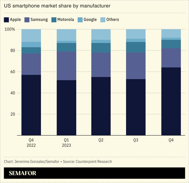 The EU’s antitrust rules are part of a broader crackdown on Big Tech on both sides of the Atlantic: A US judge recently ruled that Google held an illegal monopoly on online search in the “first big win” for federal authorities taking on market dominance. Google’s lawyers argued the company was winning because it offered the best product, but internal projections said it would lose between 60-80% of search queries on Apple IOS devices without default agreements,The New York Times’ Hard Fork podcast noted. Consolidation by the tech industry — which is largely dominated by seven firms — may be leading to economic stagnation as once-innovative firms become content with rent-seeking from existing companies, a Bloomberg columnist argued: “The problem is the decline of the entrepreneurial ethic,” he wrote.