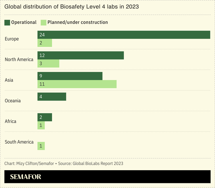 Biosafety level 4 laboratories are designed to work with deadly airborne pathogens for which there are no treatments, and other similarly dangerous materials: There are 51 around the world, mostly in North America and Europe.