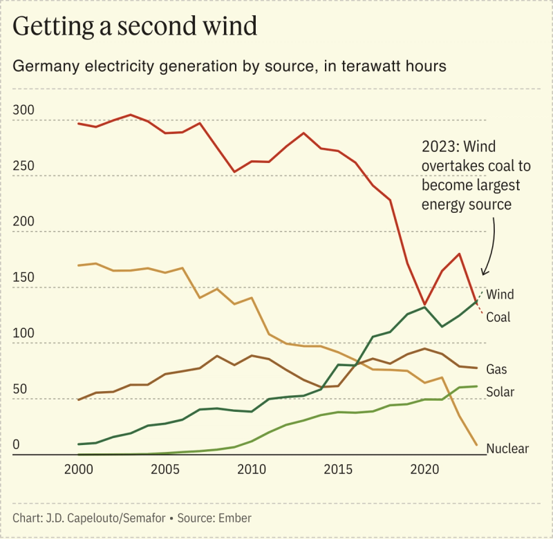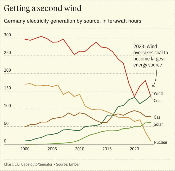 On the federal level, Germany is still investing heavily in wind and other renewables. Recent permitting reforms have made it easier to build turbines, and the country is deploying more renewables than others in Europe, Bloomberg reported this week.