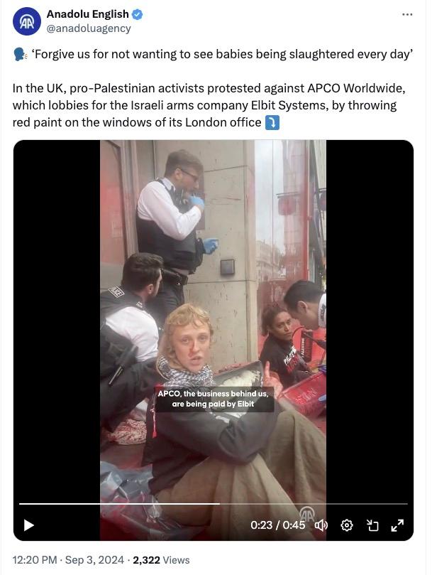 Its London offices were the target of pro-Palestinian activists last Tuesday, Turkish state news agency Anadolu Agency reported. They protested the firm’s lobbying efforts on behalf of one of Israel’s largest weapons firms, Elbit Systems, which has a $760 million two-year contract to supply ammunition to the Israeli Ministry of Defense.