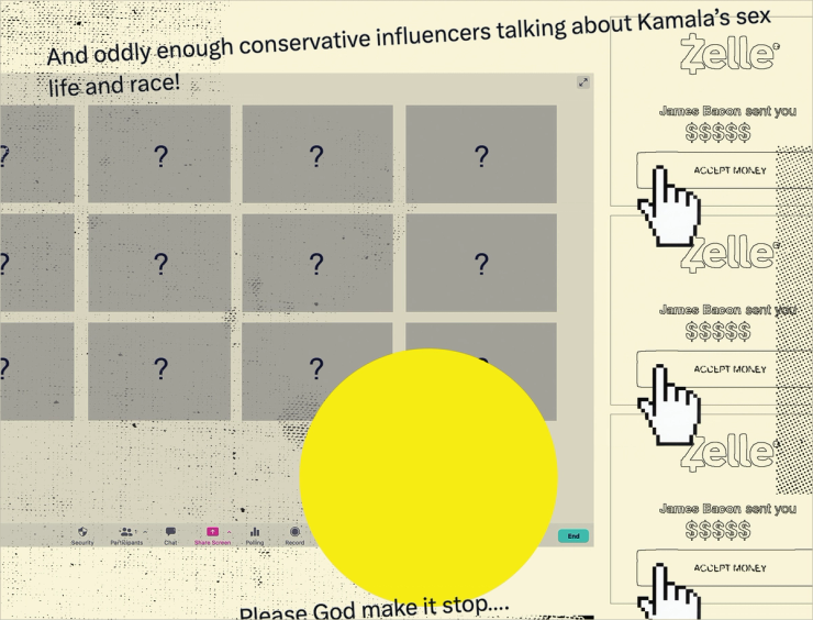 While we were able to confirm some of the details of the mystery influencer network — the payments, and the date and time of the call to discuss smearing Harris — we were unable to determine who was paying for, or organizing, the calls. Organizers told participants that the money was connected to a wealthy American, who they named — but a political operation that figure is connected to heatedly denied any connection to the influencer operation, and there’s no evidence to link them.