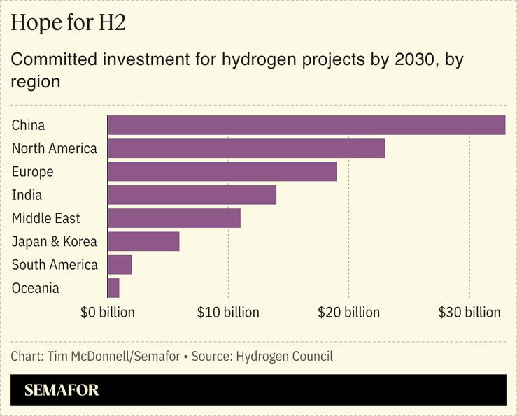 Investment in new clean hydrogen projects topped $110 billion in the last year, across more than 500 projects, a report by the Hydrogen Council, a lobbying group, found. That’s up from $75 billion in 2024. The greatest share of investment is concentrated in China, where the government “has made a strategic choice to give the industry massive backing and make it the next new technology they want to own and lead on,” Council CEO Ivana Jemelkova said in an interview.
