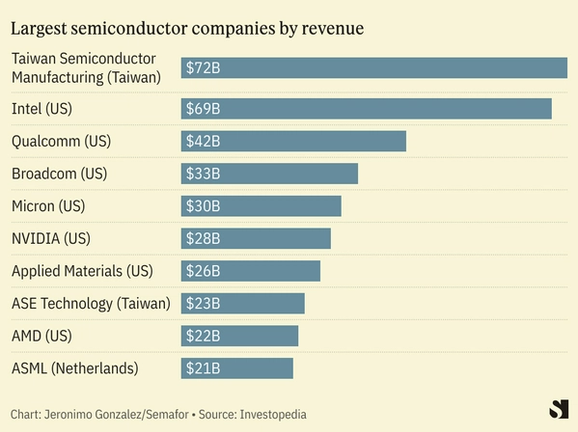 Data has shown that Taiwan Semiconductor Manufacturing (TSMC) and other U.S. companies such as Intel and Qualcomm still dominate the chip market and that China has a long way to go before it matches up to these conglomerates• 3 . But TSMC faces a different kind of challenge — retaining its engineers. The New York Times reported that amid a demographic crisis in Taiwan, many employees are overworked and have left TSMC for foreign semiconductor companies like ASML in the Netherlands, or larger tech companies like Google — where workers are offered free food and better work-life balance.