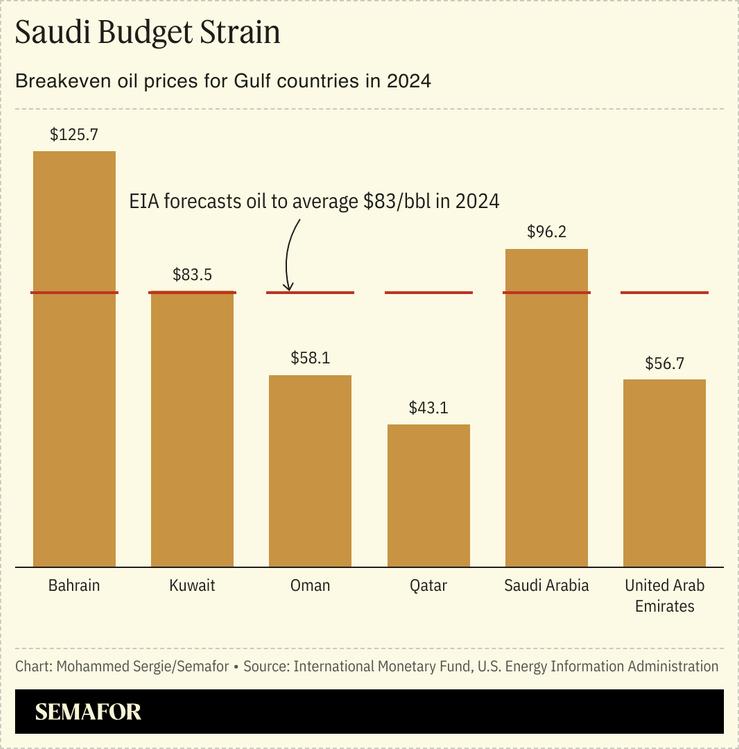 Vice President Kamala Harris, though less forthcoming on specific policies, is likely to perpetuate the Biden administration’s environmental and economic policies. Her approach could bolster energy prices, useful for sustaining and fueling the Gulf’s long-term economic visions. Oil has already fallen below what’s known as the “break-even” price for Gulf governments to keep borrowing to sustain their economic buildout. They can afford it for now, with deep reserves and low debt. But a difference of $20 a barrel is going to mean more and more to their bottom line.