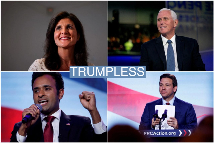 Donald Trump’s campaign is planning to send a troop of surrogates to represent him at the Republican debate Wedneday while the former president woos auto workers in Michigan.