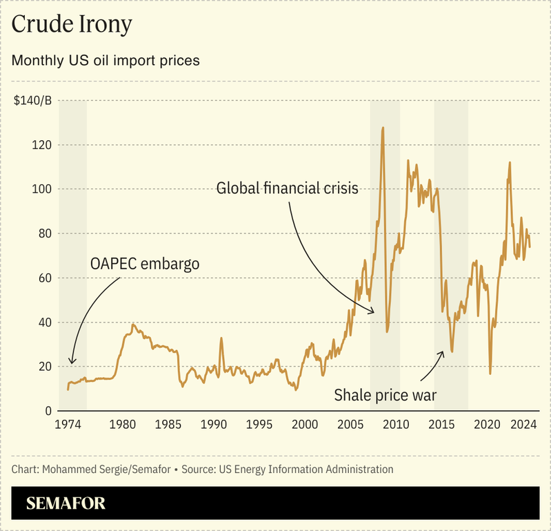 The 1970s oil shocks — driven in large part by Gulf policies — deeply scarred the US, providing the impetus for bets on nascent drilling technologies that took decades to bear fruit, but which inoculated the US from a repeat crisis, and ultimately turned it into the world’s biggest oil producer.