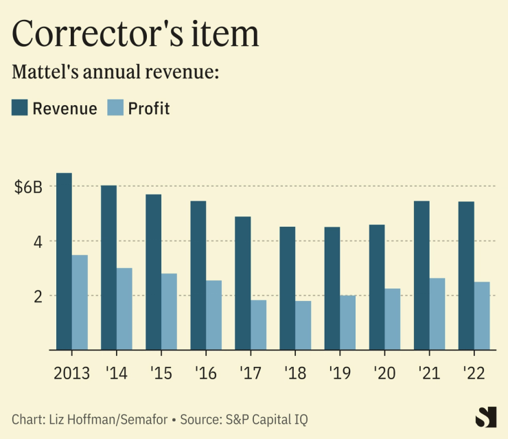 But Mattel makes a lot of stuff. I bet if I asked Jim Farley at Ford, he’d say the same thing, that they start with innovation and design. But Ford doesn’t trade like a studio.