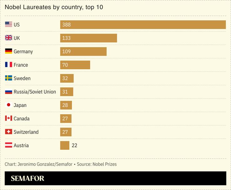 With the Nobels announced this week, Nature looked at the numbers behind the prizes. The gap between doing the research and getting the prize is growing: In the 1960s, it was 14 years, while in the 2010s it was 29 years. In the 20th century, just 11 prizes went to women, whereas 15 have in just 23 years of this century so far. And more than half of winners lived in North America — as do Ambros and Ruvkun.