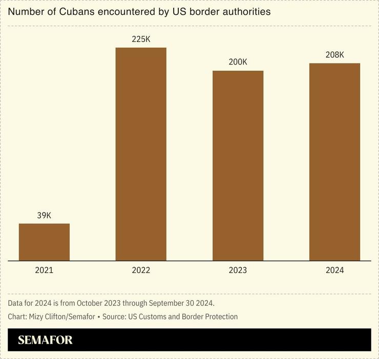 Cuba is undergoing a severe recession, which has led to 850,000 arriving in the US since 2022, and a national population depletion of 18%, according to El País. So far this year, 66,000 have also been intercepted by the US Coast Guard attempting to reach Florida by boat.