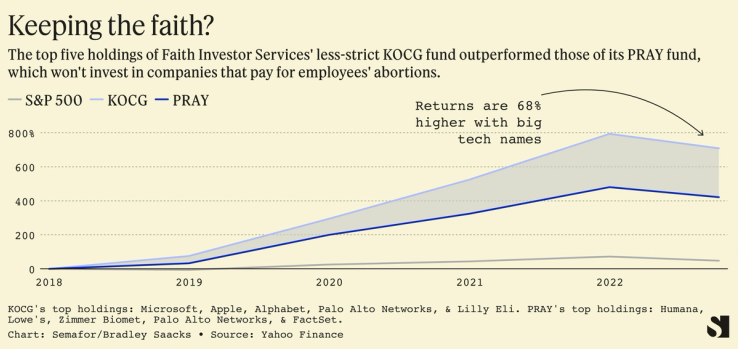 From an investing perspective, it’s been a no-brainer to put money into Apple, despite what the company’s policy on abortions might be. This outperformance gives these companies cover from evangelical pushback.