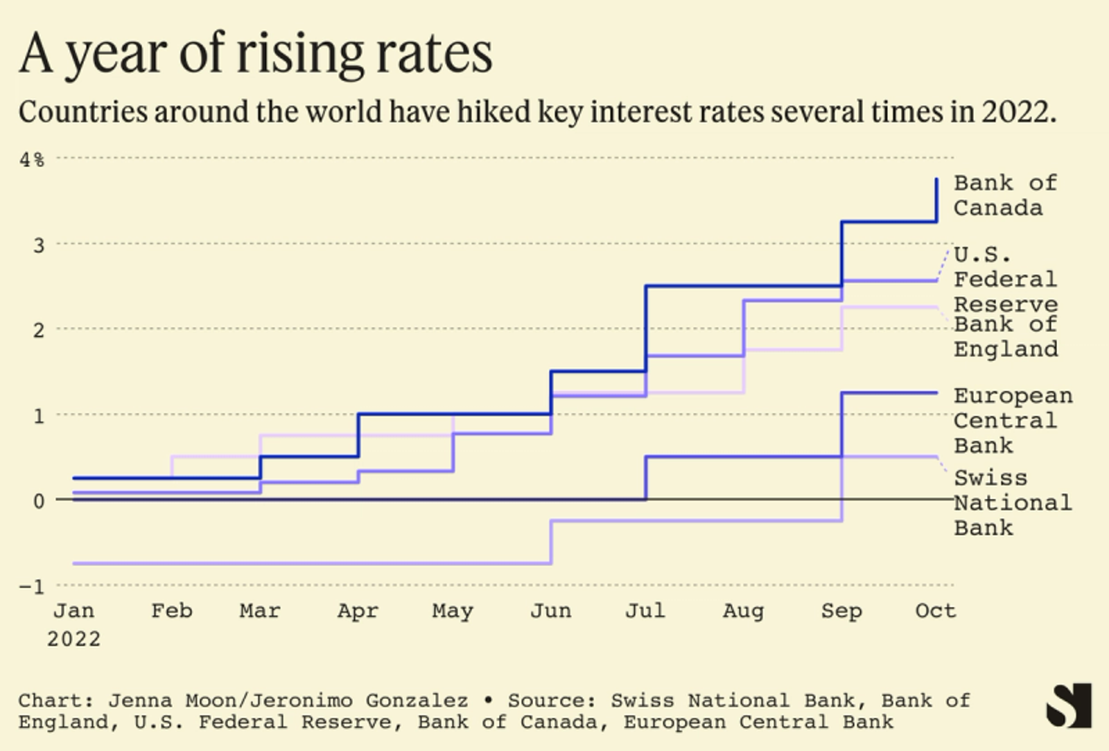 In Switzerland, rate increases by the Swiss National Bank have reversed the negative interest rates the population previously enjoyed.