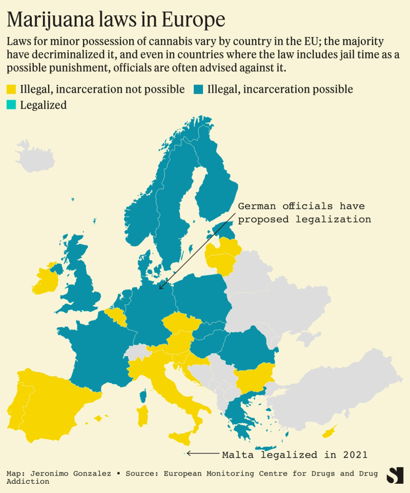 Malta, a country of around 500,000 people, legalized the possession of marijuana last year. In Luxembourg, officials have also proposed making it legal to grow and possess a small amount of weed.