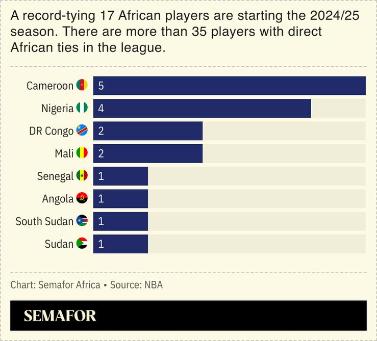 A record-equalling 17 players from African countries featured on NBA rosters for the opening night of the 2024/25 season this week, even as the league eyes greater popularity in Africa and more talent from the continent.