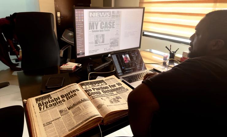 Lawal’s goal with Archivi.ng is to digitize every Nigerian newspaper published every day since independence in 1960. It is a history project to provide context for conversations about politics and the economy but also a record of language, culture and mundane aspects of Nigerian life, he says. It formally started in April when the team procured a seven-feet tall overhead scanner after raising $15,000 from donors since 2020.