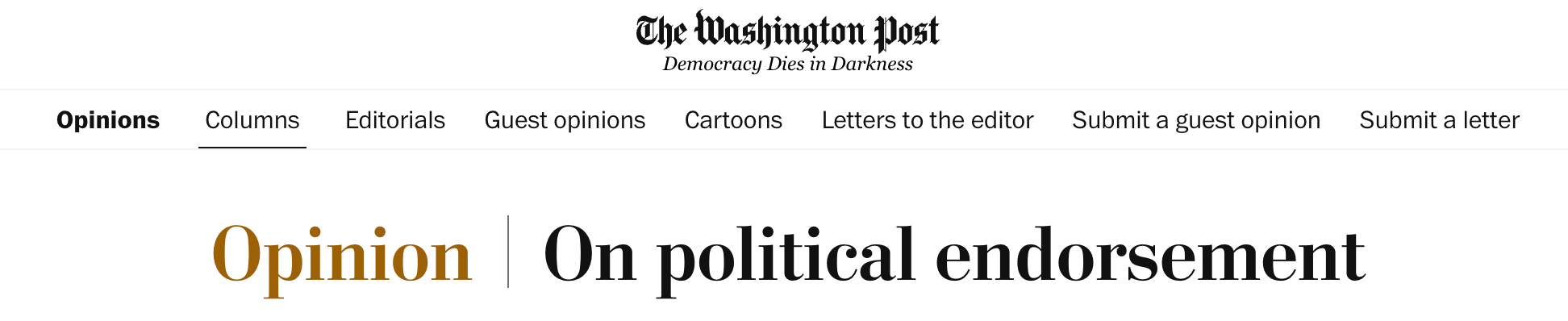 The Post, following the Los Angeles Times (as first reported by Semafor), chose last week to end its tradition of endorsing candidates, with publisher Will Lewis writing that “we know” some readers will take the decision as “an abdication of responsibility.” Lewis argued that the decision was in fact a return to a non-endorsement tradition abandoned temporarily for Dwight D. Eisenhower in 1952 and permanently after the 1972 election.
