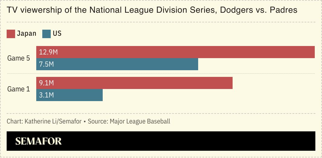 Japan’s most popular anime series delayed its broadcast to avoid conflicting with the series, and travel agencies are swamped with demand from fans hoping to attend the games in the US. The hysteria is driven by Ohtani’s immense celebrity at home: “Think of Princess Di’s coronation — multiplied by a million,” a Japanese baseball expert said.