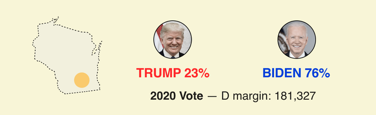 The Democrats’ new behemoth, which now gives them bigger raw vote advantages than Milwaukee County. Biden netted 112,893 votes just from the city of Madison, and there, and Democrats have actually beat his 76% in elections since 2020 – Gov. Tony Evers got 79% here in his 2022 re-election. Neither Biden nor Hillary Clinton was as natural a fit for the progressive city, and there’s been little third party energy or organizing this time. (A Republican super PAC is sending liberal voters mail about Green Party candidate Jill Stein, who’s only held a small voter meet-and-greet here at a bar.)